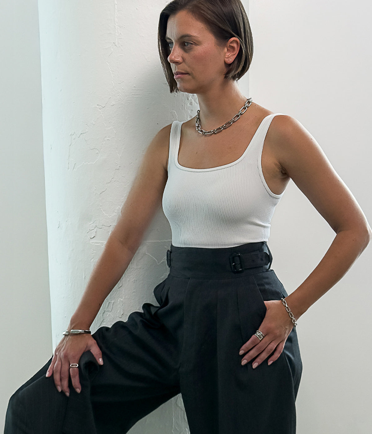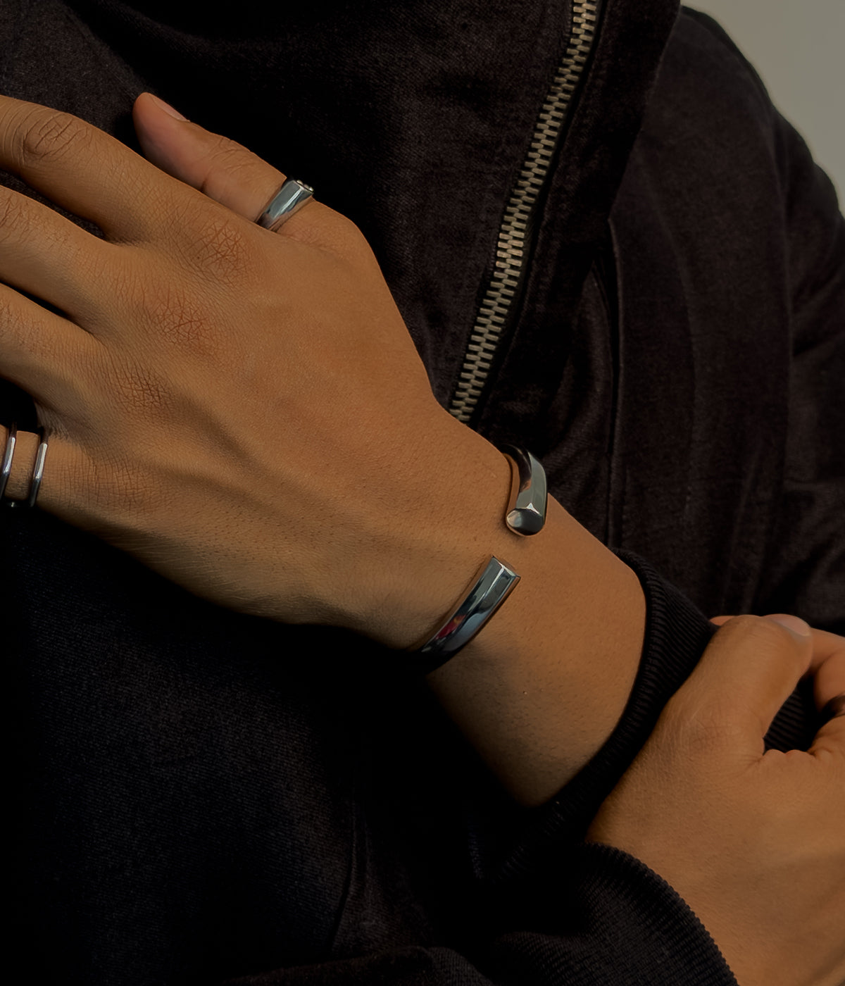 These pieces are what we envision would make up a capsule jewelry collection. They hold their space but slip into the everyday, like the first of anything it always gets celebrated but our true test is longevity. Crafted in stainless steel to stand the test of time, with silhouettes that are designed for form.